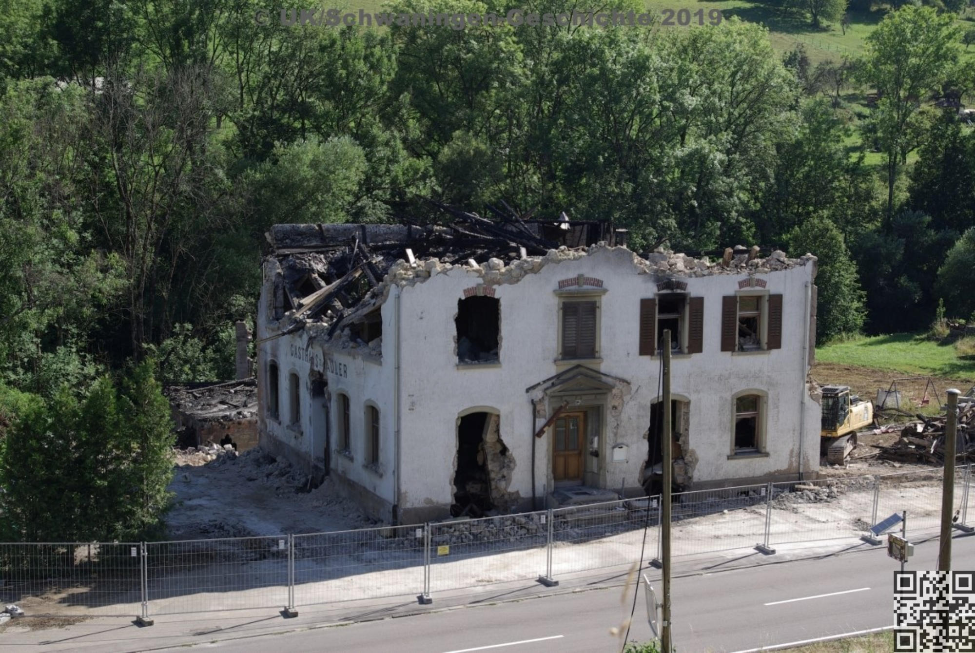 30. Juli 2019Das Gasthaus „Zum Adler“ ist quasi Geschichte. Nur noch ein Berg Schutt deutetdarauf hin, dass hier einmal ein Gebäude gestanden hat.Was nachfolgt ist zur Zeit noch offen.