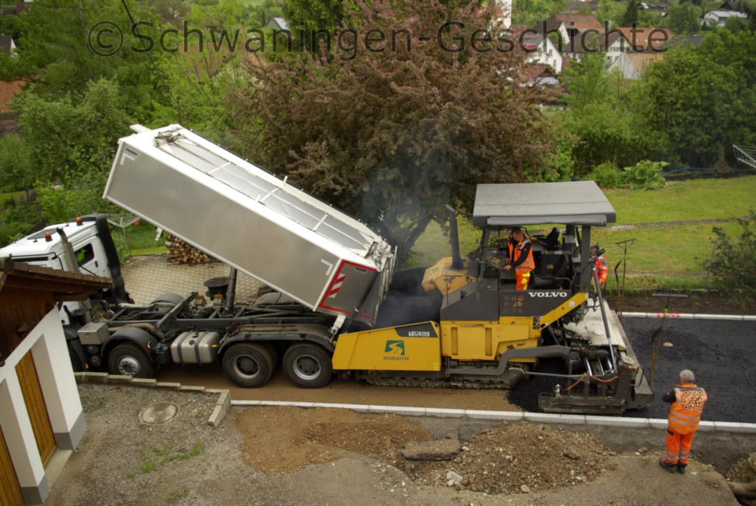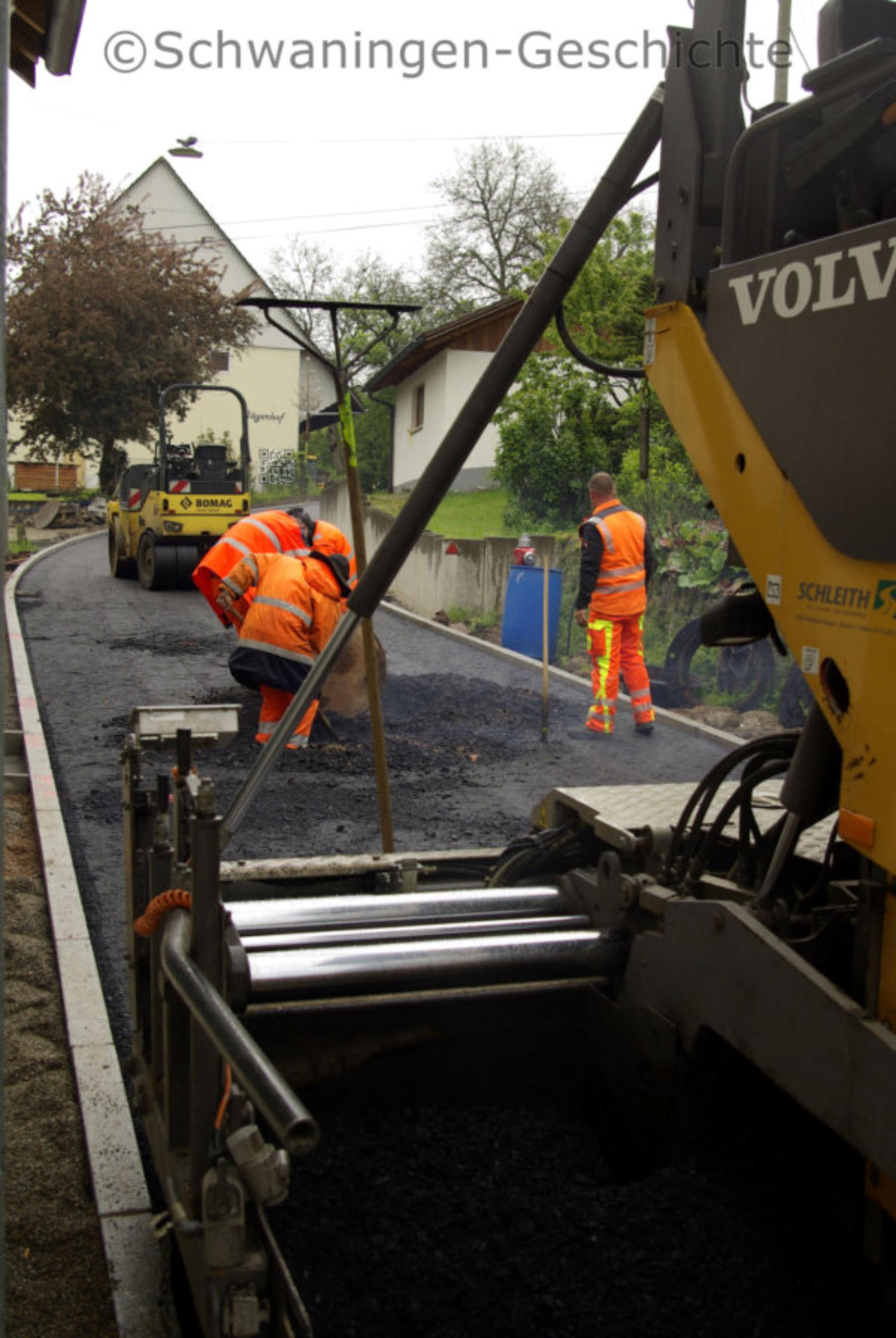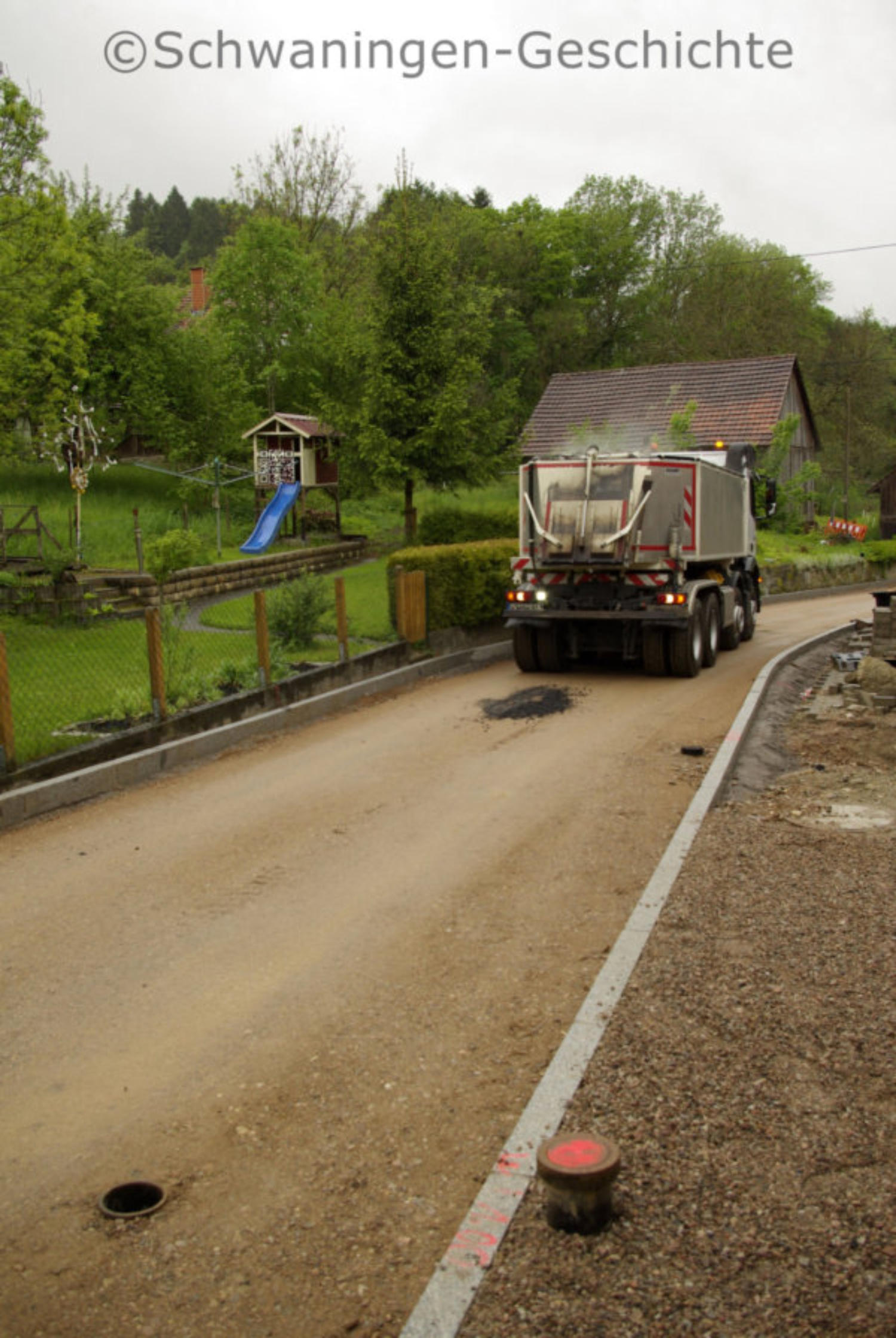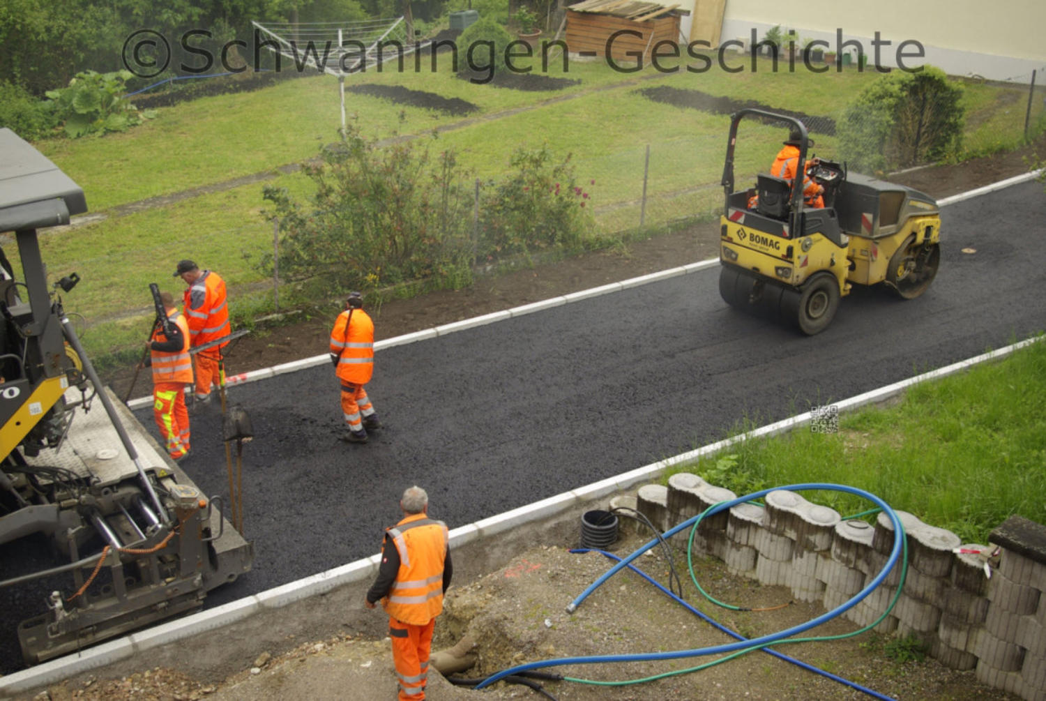 Bilder vom 11. Juli 2016Die Vorbereitungen zum Feinbelag laufen, teilweise hat esleider in der Nacht geregnet, deswegen wurde das Teerenauf den 15. Juli verschoben. Ebenso sind die Straßenlampenschon soweit vorbereitet, dass nur noch der Stromanschlussund die energiesparenden Lampen eingesetzt werdenmüssen.