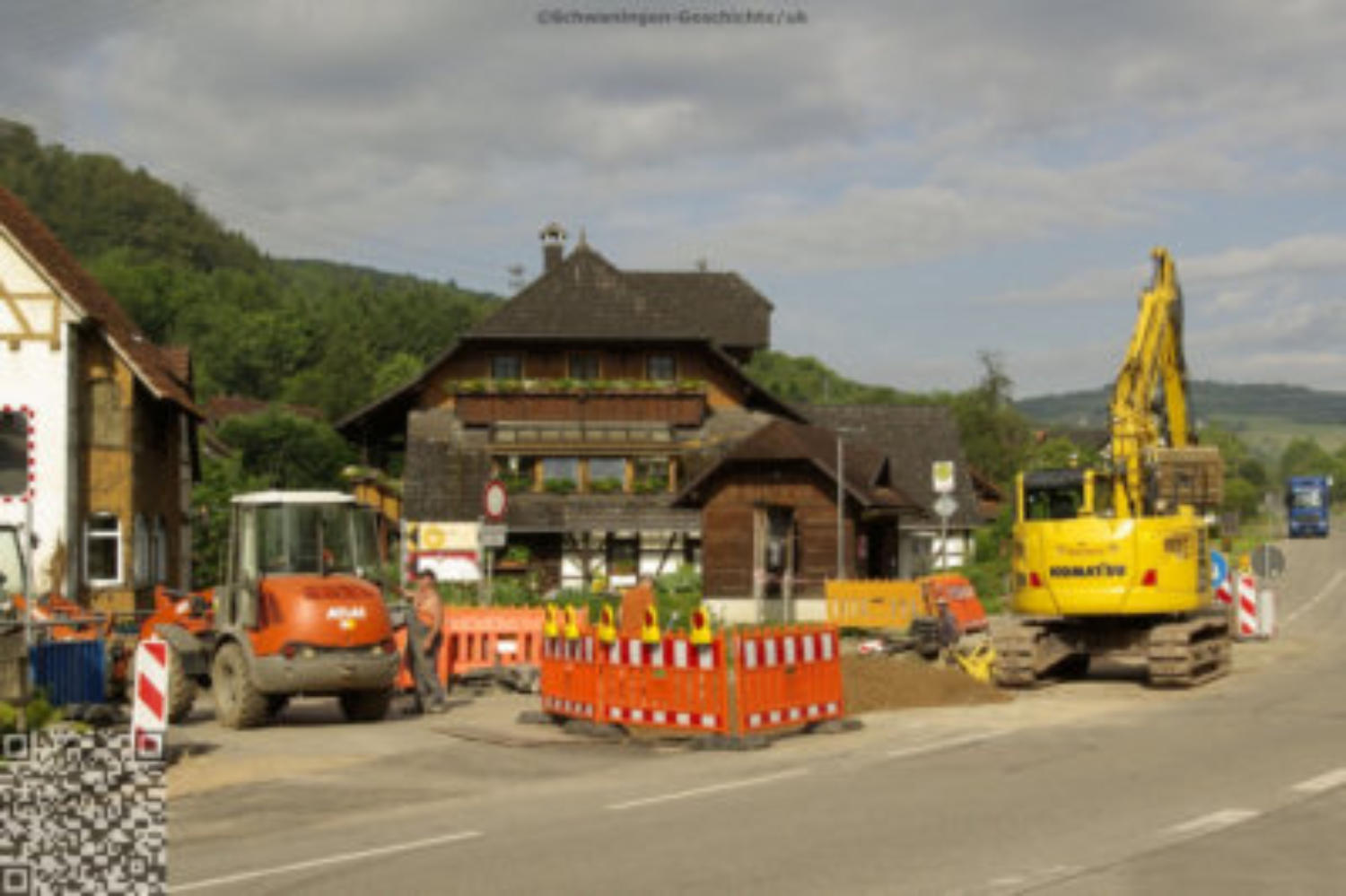 Bilder vom 01. Juli 2016Teile der Stromleitungen werden unterirdisch verlegt,dann wird die Bundesstrasse noch rechtzeitig vor demgrossen Dorffest teilgeteert